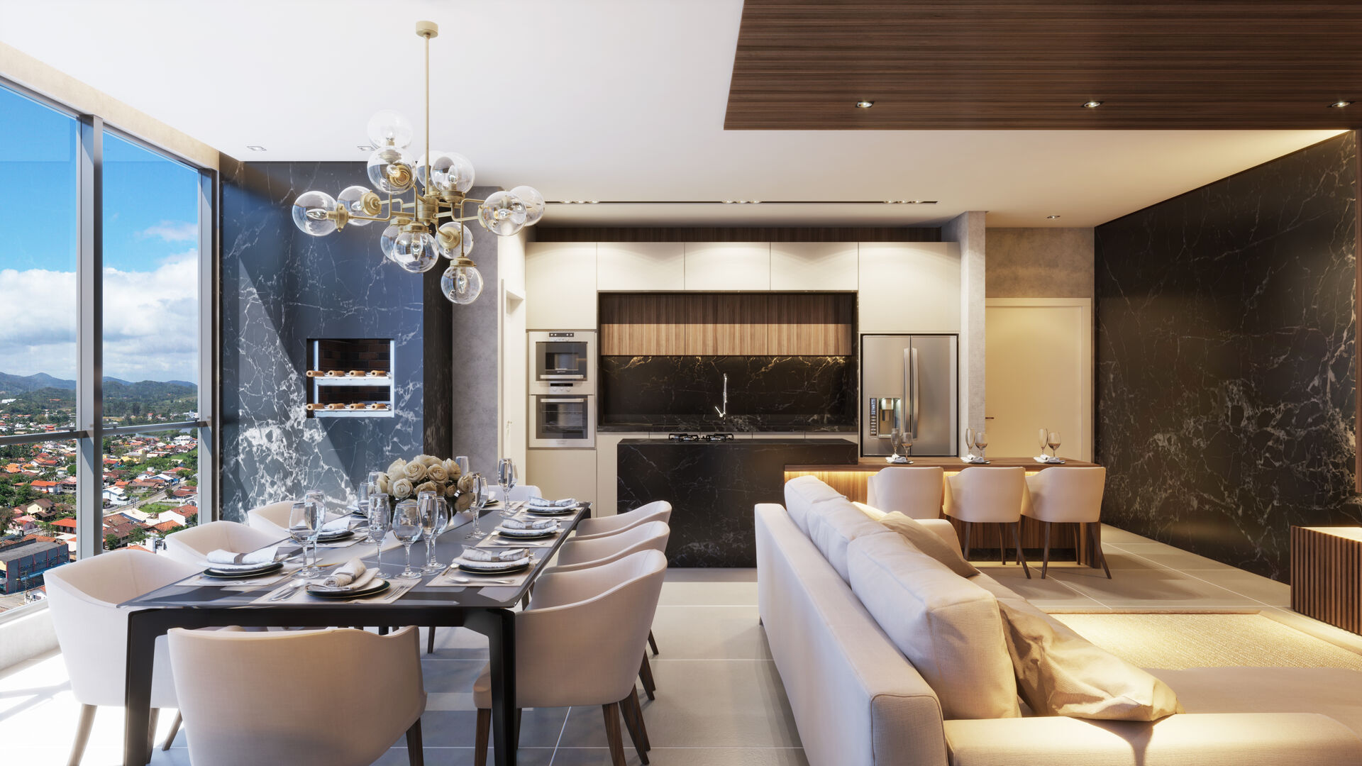 A unidade conta com ambientes amplos e bem distribuídos, living integrado, espaço gourmet com churrasqueira e infraestrutura para aquecimento a gás e ar-condicionado. Os acabamentos incluem piso em porcelanato e medidores individuais de água, luz e gás, garantindo praticidade e eficiência no dia a dia.