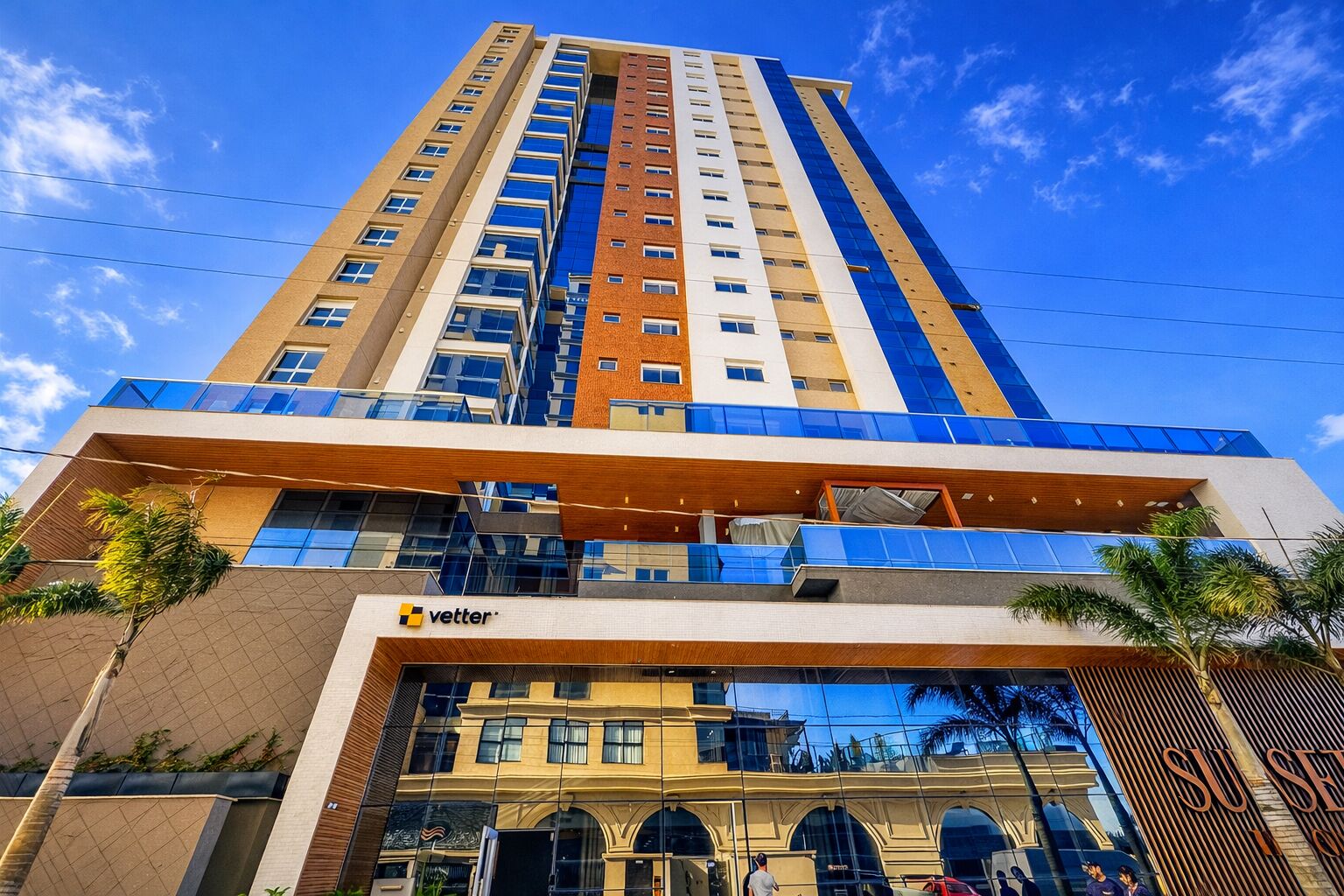 Esta unidade conta com 2 suítes, living integrado, lavabo, cozinha funcional e sacada com vista para o mar (face sul), unindo conforto, privacidade e excelente distribuição dos ambientes. O acabamento segue o padrão Vetter, com piso em porcelanato, teto rebaixado em gesso, tubulação para água quente e fria e janelas com venezianas motorizadas.