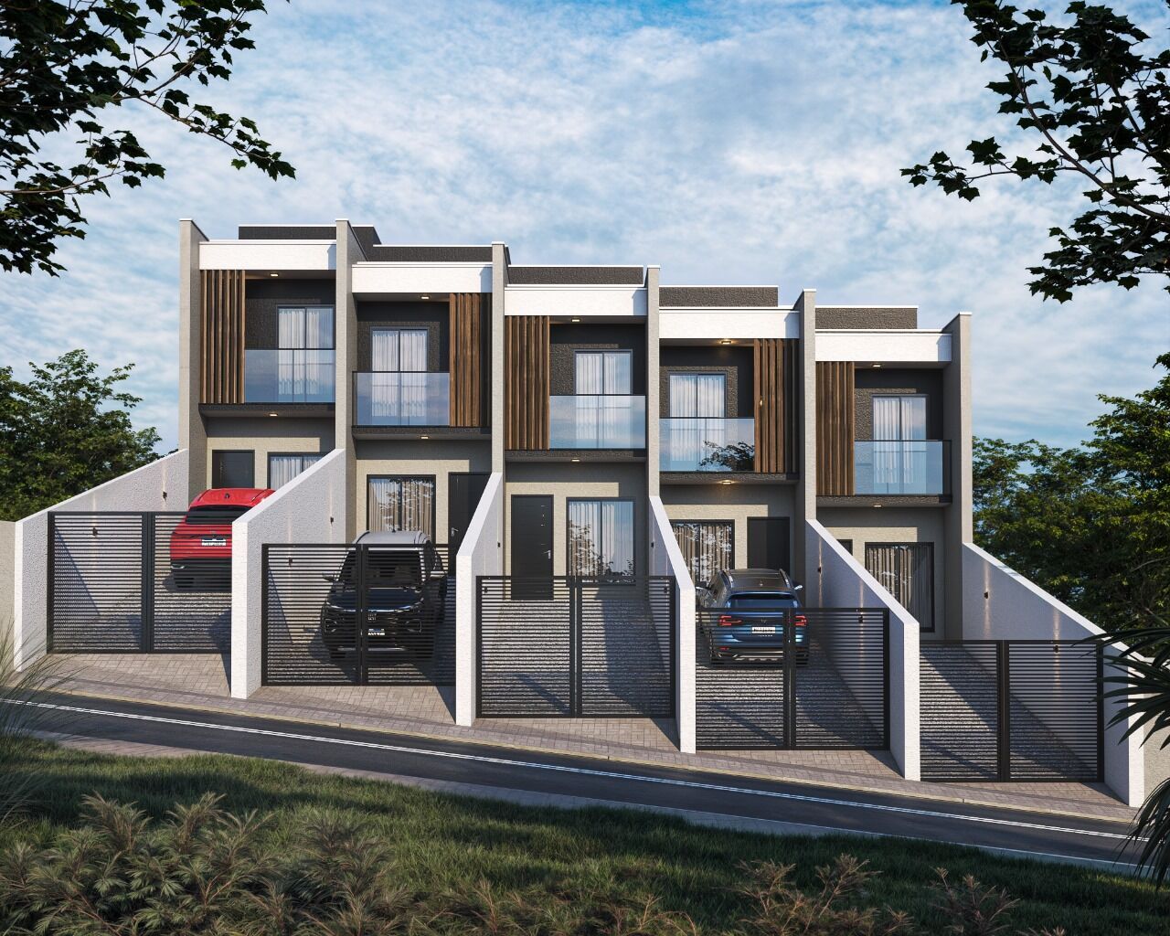 Casa 03, 04, 05 com 64m2, duas vagas, dois quartos e dois banheiros, 10m de fundos.